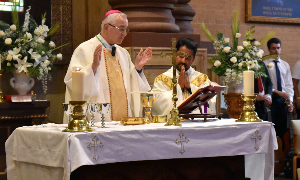 Local News Snapshots around the Diocese Share this on Facebook Share this on X Share this by email Print this page Copy the page address Bishop blesses new altar On Nov. 16, Bishop Raica traveled to Tuscumbia to dedicate Our Lady of the Shoals Catholic Parish’s new altar. Father Benny Karimalikkal, pastor, concelebrated, and Deacon Rick Chenault assisted. Related Stories Snapshots around the Diocese Cursillo group holds annual retreat Snapshots around the Diocese Special Mass for loved ones Snapshots around the Diocese Diocesan staff member elected to leadership role