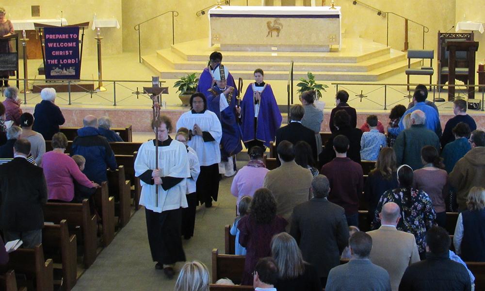On the Fourth Sunday of Advent, Bishop Steven Raica celebrated the 8:30 a.m. Mass at Our Lady of Sorrows Catholic Church (OLS) in Homewood. During his homily, he spoke of the humble town of Bethlehem and urged the congregation to humbly embrace the mystery, wonder, and importance of Christ’s coming. Also during the morning Mass, parishioners participated in a long-standing parish tradition. Many of the faithful walked up to the altar during the offertory to place their tithing pledge cards in a white basket.