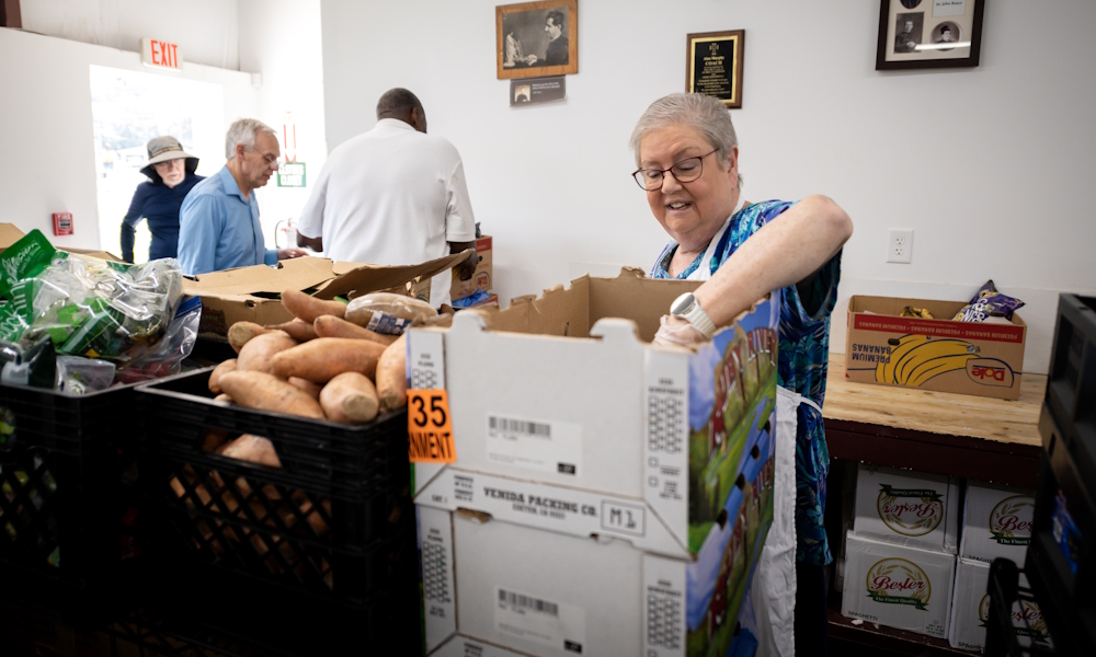 Founded in 1891, Holy Rosary is a small but vibrant parish in the Gate City neighborhood of Birmingham. In the late 1970s, the Salesians, a religious order, were serving at the parish and, even though the details are unclear, it was under their care that the food pantry opened. The steady Catholic presence exemplified the words of Jesus, “For I was hungry and you gave Me food, I was thirsty and you gave Me drink, a stranger and you welcomed Me, naked and you clothed Me, ill and you cared for Me.” Today, the Holy Rosary Food Pantry, working with the Food Bank of Central Alabama, provides over 1,400 boxes of fresh fruit, vegetables, dairy products, bakery goods, shelf-stable vegetables, and meat each month, feeding over 900 families and 2,200 members of the Gate City and Woodlawn communities. In addition, the Clothes Closet at the Food Pantry provides free clothes and personal items to all in need.