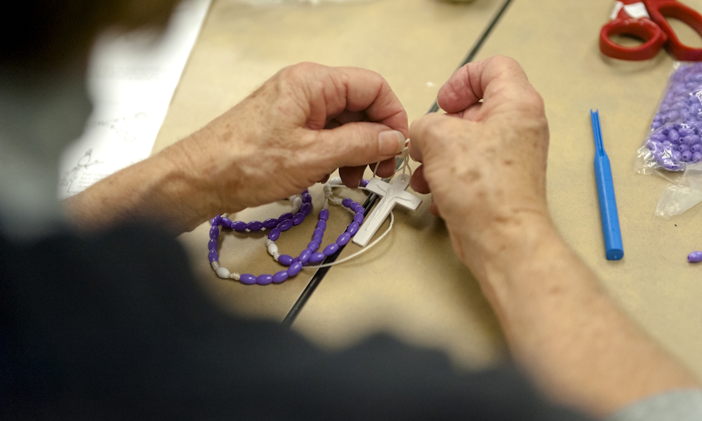 Their impact is wide and, oftentimes, not calculable. Even after changing hands, St. Vincent’s Oncology Center still provides the plastic rosaries made by the ladies. Over 12 years ago, a patient undergoing radiation treatment was unable to take a metal rosary into the treatment area. As a result, the Ladies of Charity offered to provide mission rosaries made of cord and plastic. Today, the rosaries are still making a difference, even for non-Catholics. Louis Josef, an oncology counselor at UAB St. Vincent’s Birmingham Bruno Cancer Center, attests to the impact. He recently spoke with a patient and likened the radiation treatment room, which is basically a lead room, to a meeting room to have an “appointment with God.” During the conversation, rosaries made by the Ladies of Charity sat on a side table. The man stared at them, then grabbed one. “When I go in there to take my treatment,” the gentleman said emphatically, “I'm taking Jesus with me.”