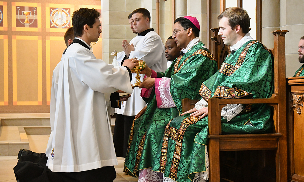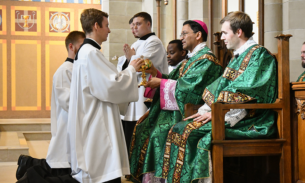 Seminarians in the Configuration Stage of formation at the Pontifical College Josephinum were instituted as lectors and acolytes on Nov. 16 by Bishop Earl Fernandes of Columbus and Josephinum Vice-Chancellor. Birmingham seminarians Patrick Letterle and Billy Moin were instituted as acolytes.
