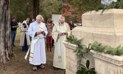 Parishioners of Resurrection Chapel in Moulton recently installed a ten-foot crucifix on the front of the chapel as a witness to all in the community.